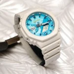 سری GA-2100ساختار محافظ هسته کربنیویژگی جابهجایی عقربهها (عقربهها به کنار میروند تا نمایی بدون مانع از محتوای نمایش دیجیتال فراهم شود)زمانسنجی منظم:آنالوگ: 2 عقربه ساعتشمار و دقیقهشمار (عقربه هر 20 ثانیه حرکت میکند)، 1 نمایشگر (روزهای هفته)دیجیتال: ساعت، دقیقه، ثانیه، عصر، ماه، تاریخ، روز |