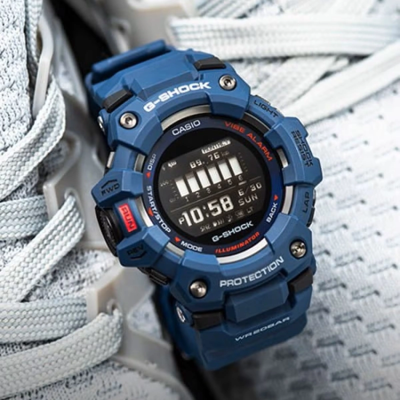 نسخه G-SQUAD از سری GBD-100 مناشب برای دوندگان و ورزشکاراندارای عملکرد آموزشینمایش فاصله، سرعت، ضربان و سایر مقادیر محاسبه شده بر اساس شتابسنجزمانهای دور خودکار/دستی، توقف خودکار، تنظیم هشدار هدف (زمان، کالری سوزانده شده)سفارشیسازی نمایش آموزش (زمان سپری شده، فاصله، ضربان، زمان دور، فاصله دور، ضربان دور، میانگین ضربان، سرعت، میانگین سرعت و کالری سوزانده شده)فرمت 12/24 ساعتهحالت پرواززمانسنجی منظم دیجیتال: ساعت، دقیقه، ثانیه، صبح/عصر، ماه، تاریخ، روزایجاد پروفایل کاربریویبره روشن/خاموش |