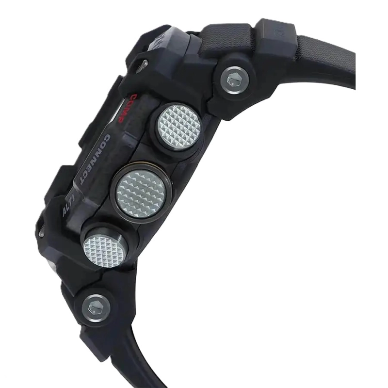 نسخه کلکسیون MUDMASTER – یکی از مستحکمترین و مقاومترین کلکسیونهای سری جیشاکهسته از جنس فیبرکربنپشت ساعت از جنس رزین تقویتشده با فیبر شیشه، مقاوم در برابر شوک و گلولایمناسب برای کمپینگ و کوهنوردیقاب ساعت دارای سه لایه از جنس رزین و لایه میانی از جنس فیبر کربن – طراحی برگرفته از بشکههای گازوییل خودروهای آفرودقابلیت تشخیص مسیر (GPS)، اندازهگیری دما، ارتفاع و فشارهواتنظیم خودکار ساعت در حین اتصال به تلفنهمراهتنظیمات راحتتر ساعت از طریق برنامهذخیره زمان هر اتصال به تلفنهمراهذخیره اطلاعات ارتفاعی هر مکاننمایش موقعیت مکانیذخیره موقعیت مکانیقابلیت جابجایی بین حالتهای متفاوتی که در صفحه نمایش داده میشوندتصحیح خودکار دادههای مربوط به ارتفاعقابلیت پیداکردن تلفنهمراهنمایش میزان شارژ باقیماندهبه راحتی در تاریکی دیده میشودزمانسنجی منظم:نمایش ساعت، دقیقه، ثانیه، بعد از ظهر، ماه، تاریخ و روزنمایش دولایه (فناوری Duplex LCD) – نمایش جهت قطبنما در لایه بالایی – نمایش ساعت و اعداد در لایه پایینی |