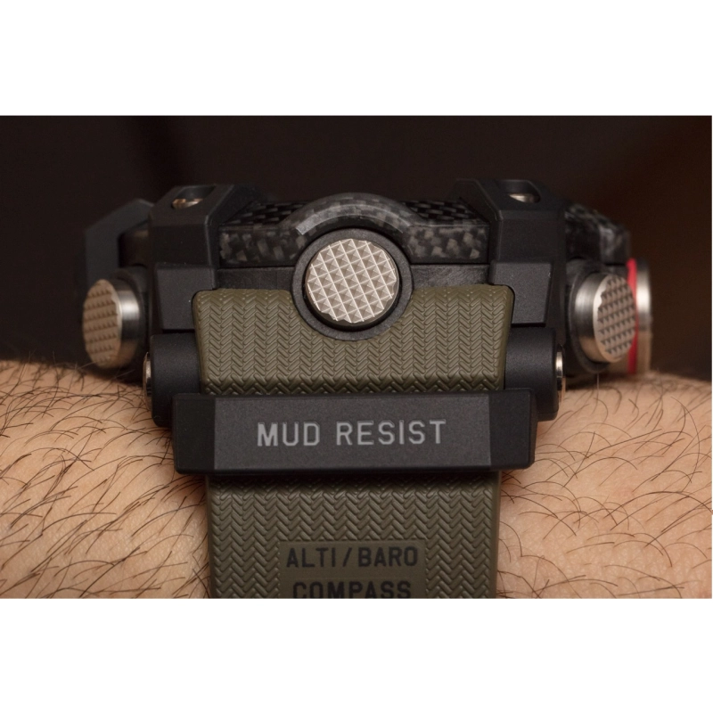 نسخه کلکسیون MUDMASTER – یکی از مستحکمترین و مقاومترین کلکسیونهای سری جیشاکهسته از جنس فیبرکربنپشت ساعت از جنس رزین تقویتشده با فیبر شیشه، مقاوم در برابر شوک و گلولایمناسب برای کمپینگ و کوهنوردیقاب ساعت دارای سه لایه از جنس رزین و لایه میانی از جنس فیبر کربن – طراحی برگرفته از بشکههای گازوییل خودروهای آفرودقابلیت تشخیص مسیر (GPS)، اندازهگیری دما، ارتفاع و فشارهواتنظیم خودکار ساعت در حین اتصال به تلفنهمراهتنظیمات راحتتر ساعت از طریق برنامهذخیره زمان هر اتصال به تلفنهمراهذخیره اطلاعات ارتفاعی هر مکاننمایش موقعیت مکانیذخیره موقعیت مکانیقابلیت جابجایی بین حالتهای متفاوتی که در صفحه نمایش داده میشوندتصحیح خودکار دادههای مربوط به ارتفاعقابلیت پیداکردن تلفنهمراهنمایش میزان شارژ باقیماندهبه راحتی در تاریکی دیده میشودزمانسنجی منظم:نمایش ساعت، دقیقه، ثانیه، بعد از ظهر، ماه، تاریخ و روزنمایش دولایه (فناوری Duplex LCD) – نمایش جهت قطبنما در لایه بالایی – نمایش ساعت و اعداد در لایه پایینی |