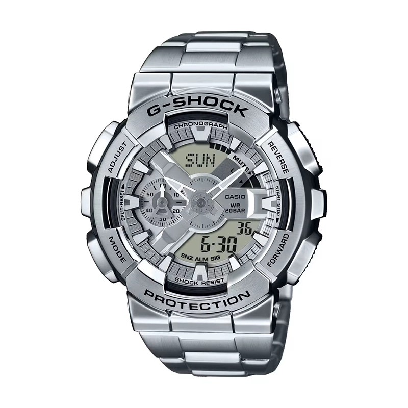 | سایر ویژگی ها | عضو کلکسیون G-STEEL از سری ساعتهای جیشاک – نسخه جدید سال 2025بدنه ساعت از جنس رزین تقویتشده با فیبر شیشهبدنه و بند پولیششده براقبه راحتی در تاریکی دیده میشودنمایش زمان به فرمت 12/24 ساعتهزمانسنجی منظم:آنالوگ: 2 عقربه دقیقه و ساعتشمار – حرکت عقربه دقیقهشمار هر 20 ثانیهیک بخش صفحه برای نمایش شاخص کرنومتردیجیتال: ساعت، دقیقه، ثانیه، بعد از ظهر، ماه، تاریخ و روز |