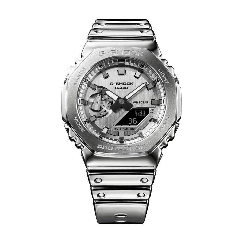 G-STEEL سری 2100فرمت 12/24 ساعتهویژگی جابهجایی عقربهها (عقربهها به کنار میروند تا نمایی بدون مانع از محتوای نمایش دیجیتال فراهم شود)زمانسنجی منظم:آنالوگ: 2 عقربه ساعتشمار و دقیقهشمار (عقربه هر 20 ثانیه حرکت میکند)، 1 نمایشگر (روزهای هفته)دیجیتال: ساعت، دقیقه، ثانیه، عصر، ماه، تاریخ، روز |