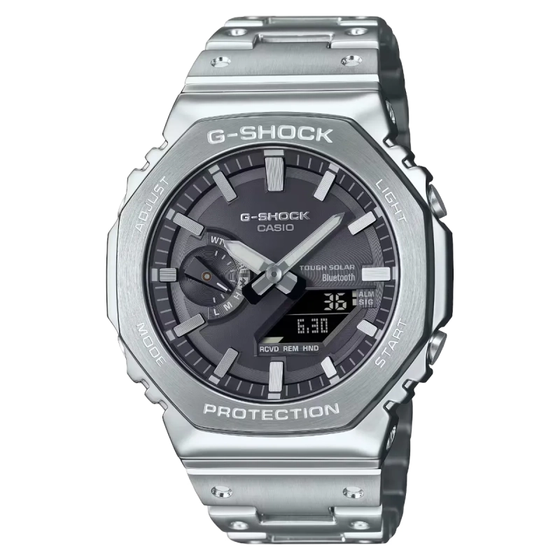 طراحی الهام گرفته از اولین مدل ساعتهای G-SHOCK – سری DW-5000Cکل ساعت از جنس استیل ضدزنگ پولیش شدهدارای قطعات داخلی از جنس رزین برای ضدضربهکردن ساعتساخت صفحه توسط تکنولوژی روز در مرکز یاماگاتا در ژاپنصفحه دارای طرح دورانی و بخارگونه به رنگ مشکیاتصال به تلفن همراه (به همراه قابلیت Find your phone)قابلیت جابجایی نمایش تاریخ و ماه در صفحه دیجیتالنمایش روز (پشتیبانی از 6 زبان متفاوت)عقربههای شبتابقابلیت جابجایی عقربه برای ایجاد دید بهتر از صفحه دیجیتالنشاندادن میزان شارژ باقیمانده7 ماه شارژدهی با استفاده عادی (پس از شارژ کامل)18 ماه شارژدهی در حالت ذخیره انرژی (پس از شارژ کامل)انتقال داده کرنومتر به تلفنهمراهدسترسی به زمان بیش از 300 شهر و بروزرسانی خودکار زمان (در صورت لینکشدن با نرمافزار)پیدا کردن تلفن همراه با فشردن یک دکمه ساعتایجاد کردن آلارم یادآوریتنظیمات ساده (از طریق نرم افزار)تنظیم خودکار ساعتقاب فلزی پشت ساعت با چرخش باز میشود (تعمیرات آسانتر) |