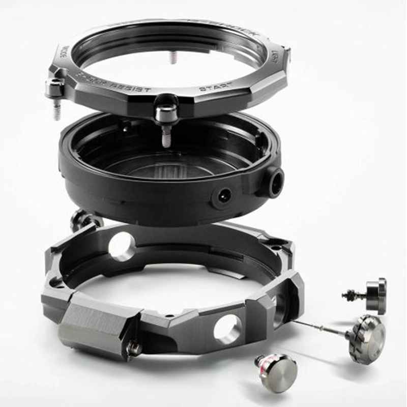 3 عقربه (ساعت، دقیقه، ثانیه)3 صفحه مدرج (ساعت و دقیقه دو زمانه، 24 ساعته دو زمانه، روز)پوشش ضد انعکاس روی شیشه بازتاب نور را کاهش میدهد.دارای ساختار محافظ Carbon Core Guardقاب با پوشش Ion Plating در رنگهای آبی و نقرهای |