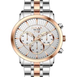 زمانسنجی منظم آنالوگ: 3 عقربه (ساعت، دقیقه و ثانیه)3 نمایشگر (تاریخ، روزهای هفته و 24 ساعته) |