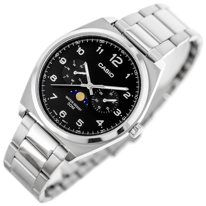آنالوگ: 3 عقربه (ساعت، دقیقه، ثانیه) + 3 صفحه فرعی برای نمایش روز، تاریخ و فاز ماهنمایشگر فاز ماه (Moon Phase) |