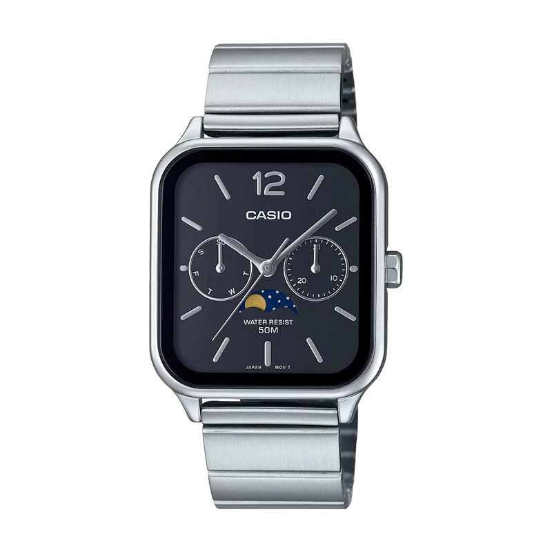 آنالوگ: 3 عقربه (ساعت، دقیقه، ثانیه) + 3 صفحه فرعی برای نمایش روز، تاریخ و فاز ماهنمایشگر فاز ماه (Moon Phase) |