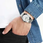 ساعت مچی سیکو مدل SRZ554P1سیکو، یک برند معروف و محبوب در زمینه ساعتهای مچی و تجهیزات وابسته به آن می باشد. این شرکت در سال 1881 توسط البرتو سیکو در شهر کوماتو، ژاپن تأسیس شد و از پیشتازان صنعت ساعت سازیست.طراحیهای ساعتهای سیکو اغلب ساده، کلاسیک و البته زیبا هستند. به صورتی است که با طراحیهای مدرن و کلاسیک هماهنگی دارند.ساعتهای سیکو تلفیق هنر، دقت و نوآوریست. سیکو نمادی از زمان و یک علامت شناخته شده از سلیقه و اعتبار است.هر محصول، یک داستان منحصر به فرد از زمان و ذوق طراحی را با خود به ارمغان میآورد. از جنسها و مواد برتر تا طراحیهای شگفتانگیز، هر ساعت سیکو به عنوان یک اثر هنری برجسته شناخته میشود.همچنین، فناوریهای پیشرفته و دقت فوقالعاده در ساعتهای سیکو اطمینان میدهند که شما همواره در کنترل زمان خود باشید.با مجموعهای از ساعتهای متنوع و جذاب، سیکو تجربهای فوقالعاده از زمان و استایل را برای شما فراهم میکند. اکنون، با محصولات سیکو، زمان را به یک سفر استثنایی از زیبایی و علم تبدیل کنید.SeikoGENERAL، مدل های روزمره و ورزش سیکو را تشکیل می دهند. این ساعت ها معمولا از موتور کوارتز بهره می برند و در مدل های تخصصی کرنومتر و نمایش ۲۴ ساعت شبانه روز را برای شما فراهم می کنند.جنس بدنه استیل و تیتانیوم به همراه بند های رابر، چرمی و استیل جنس این مدل ساعت را تشکیل می دهد. سری جنرال قیمت های مقرون به صرفه تری نسبت به دیگر مدل های سیکو دارند.ویژگی های کلیدی ساعت مچی سیکو مدل SRZ554P1جنس قاب: استیلجنس بند: استیلجنس شیشه: یاقوت کبودتکنولوژی موتور: کوارتز