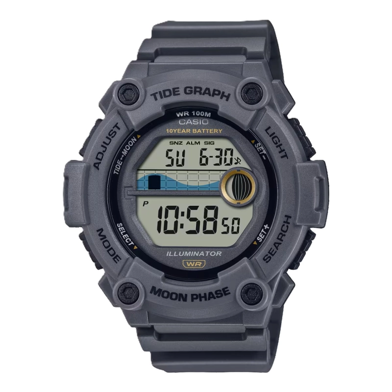طراحی مناسب برای ورزشهای آبی (نمایش فاز ماه و میزان جزر و مد)نمودار جزر و مد (نمایش میزان جزر و مد برای هر تاریخ دلخواه)به راحتی در تاریکی دیده میشودنمایش ساعت با فرمت 12/24 ساعتهزمانسنجی منظم:نمایش ساعت، دقیقه، ثانیه، صبح و عصر، ماه، تاریخ و روز |