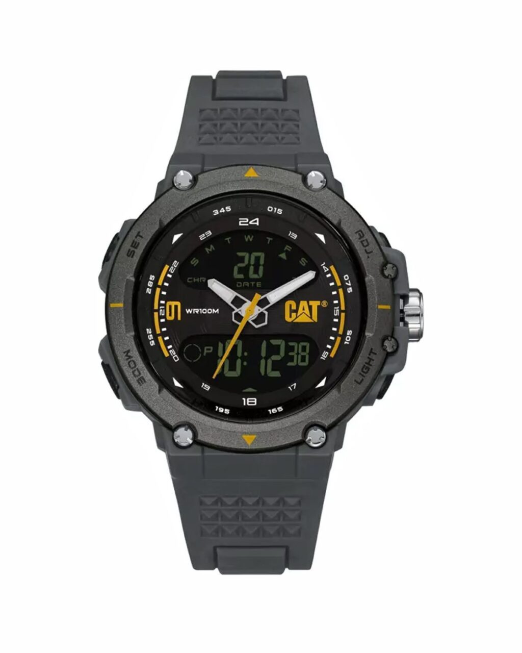 دسته: caterpillar, بدنه رزین, بند خاکستری, تعداد موتور, جنس بدنه, جنس بند, رنگ بند, رنگ صفحه, ساعت بر اساس برند, ساعت بر اساس جنسیت, صفحه مشکی, مردانه