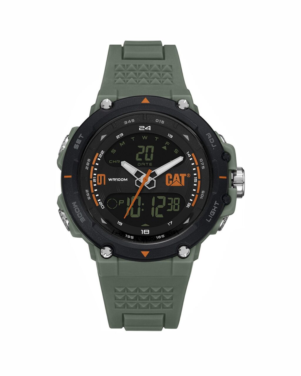 دسته: caterpillar, بدنه رزین, بند سبز, تعداد موتور, جنس بدنه, جنس بند, رنگ بند, رنگ صفحه, ساعت بر اساس برند, ساعت بر اساس جنسیت, صفحه مشکی, مردانه
