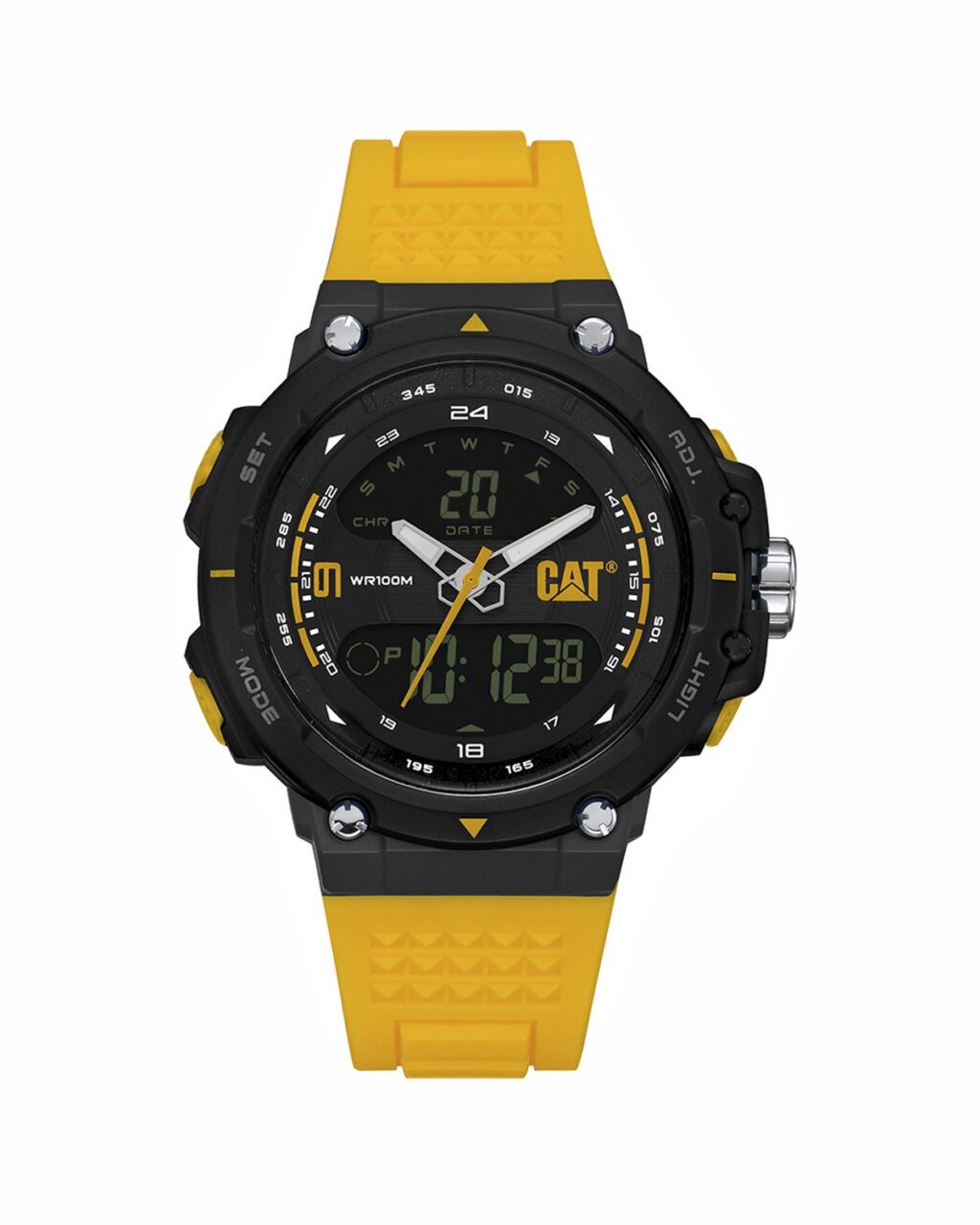 دسته: caterpillar, بدنه رزین, بند زرد, تعداد موتور, جنس بدنه, جنس بند, رنگ بند, رنگ صفحه, ساعت بر اساس برند, ساعت بر اساس جنسیت, صفحه مشکی, مردانه