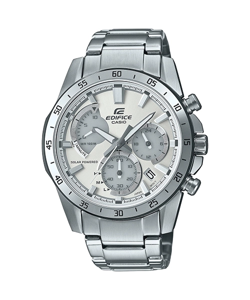 جنس بدنه / قاب: استیل ضدزنگدکمه ای، سهقلابهبند استیل ضدزنگشیشه معدنیدرپوش پشتی با قفل پیچیمقاومت در برابر آب تا عمق 100 متریباتری خورشیدیکرونومتر 1 ثانیه ایظرفیت اندازهگیری: 9'59حالته ای اندازهگیری: زمان سپریشده، زمانه ای جایگاه اول و دومنشانگر میزان شارژ باترینمایش تاریخوقتنمای معمولیآنالوگ: 3 عقربه (ساعتشمار، دقیقهشمار، ثانیهشمار)،3 صفحه مدرج (24 ساعته، کرونومتر دقیقهشمار، کرونومتر ثانیهشمار)دقت: ±20 ثانیه در هر ماهزمان کارباتری از شارژ کامل تا توقف عقربهها: تقریباً 5 ماه |