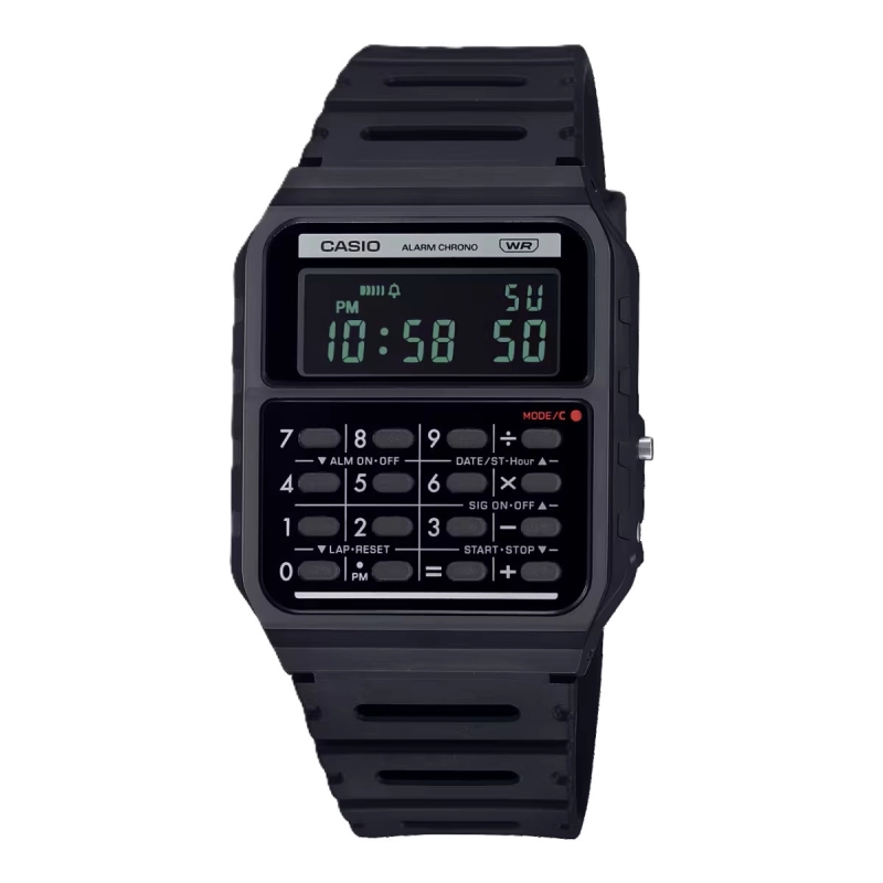 طراحی برگرفته از کاسیو مینی، اولین ماشین حساب شخصی در جهانماشین حساب 8 رقمینمایش ساعت با فرمت 12/24 ساعته |