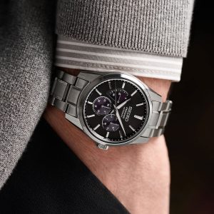 دارای طراحی ساده، باریک و سبک به همراه رنگ ماتزمانسنجی منظم شامل سه عقربه ثانیه، دقیقه و ساعتشمار |