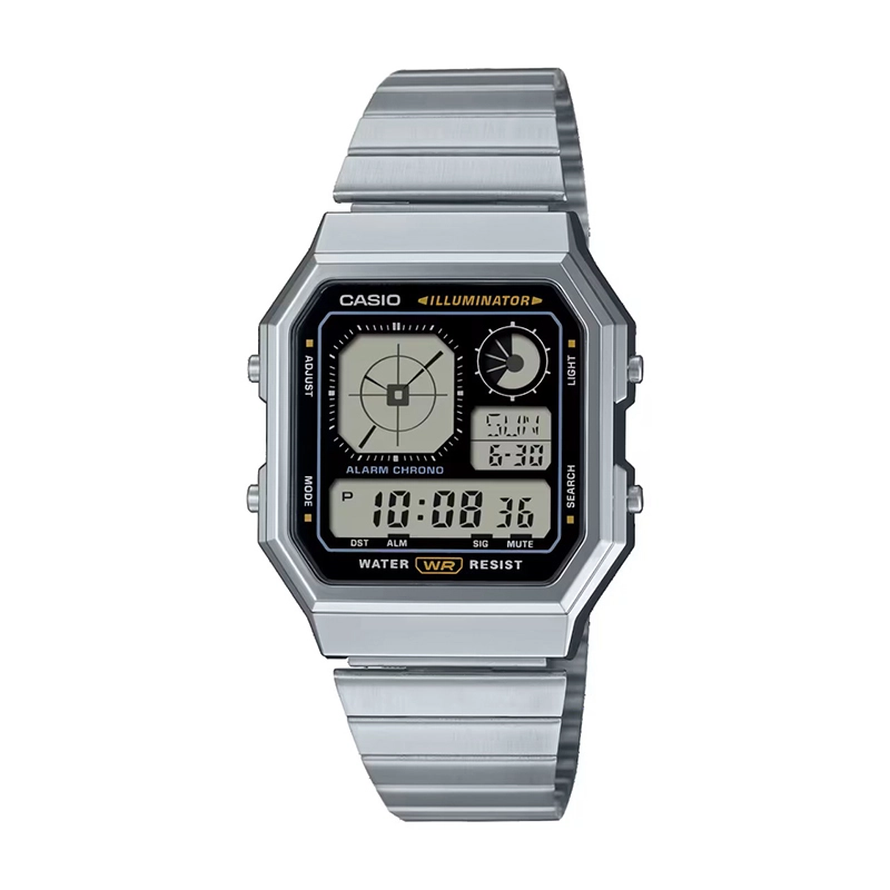 طراحی الهامگرفته از گجتهای نوستالژیکبه راحتی در تاریکی دیده میشودنمایش زمان به فرمت 12/24 ساعتهزمانسنجی منظم شامل نمایش ساعت، دقیقه، ثانیه، بعد از ظهر، ماه، تاریخ و روز |