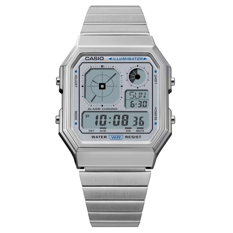 | سایر ویژگی ها | طراحی الهامگرفته از گجتهای نوستالژیکبه راحتی در تاریکی دیده میشودنمایش زمان به فرمت 12/24 ساعتهزمانسنجی منظم شامل نمایش ساعت، دقیقه، ثانیه، بعد از ظهر، ماه، تاریخ و روز |