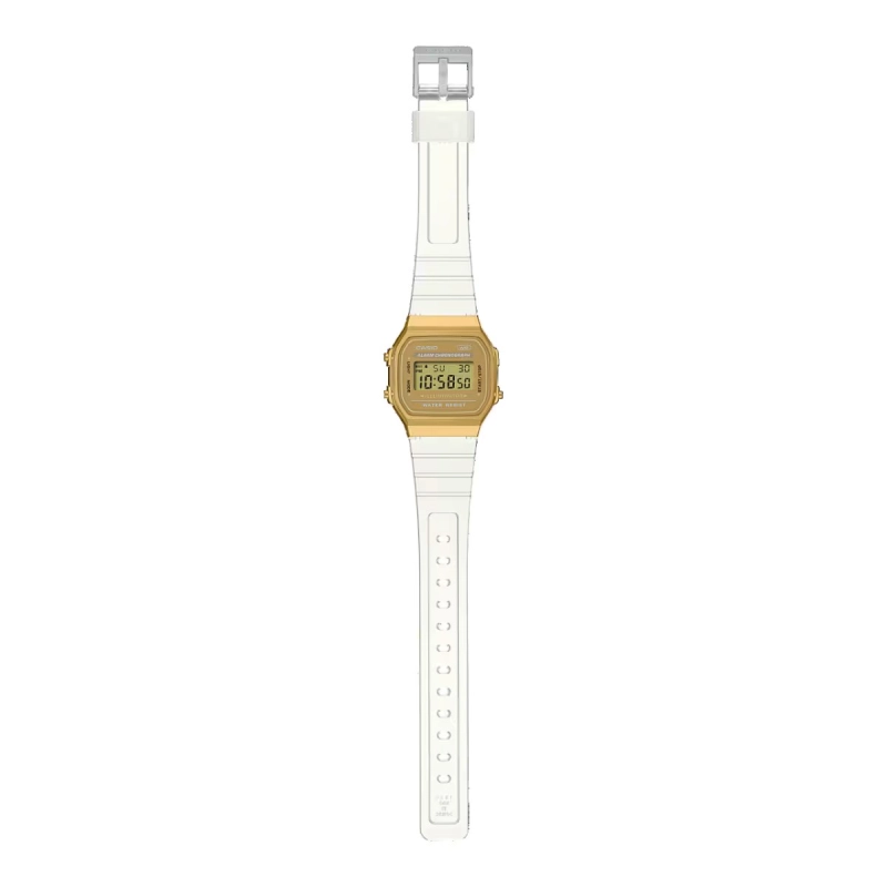 طراحی نوستالژی برگرفته از اولین مدل رونمایی‌شده از سری A168 در دهه 1980طراحی این ساعت برنده جایزه Good Design Long Life Design Award در سال 2011 شده استبدنه از جنس رزین با روکش طلایی به همراه بند شفافنمایش زمان به فرمت 12/24 ساعتهزمان‌سنجی منظم شامل نمایش ساعت، دقیقه، ثانیه، بعد از ظهر، تاریخ و روز
