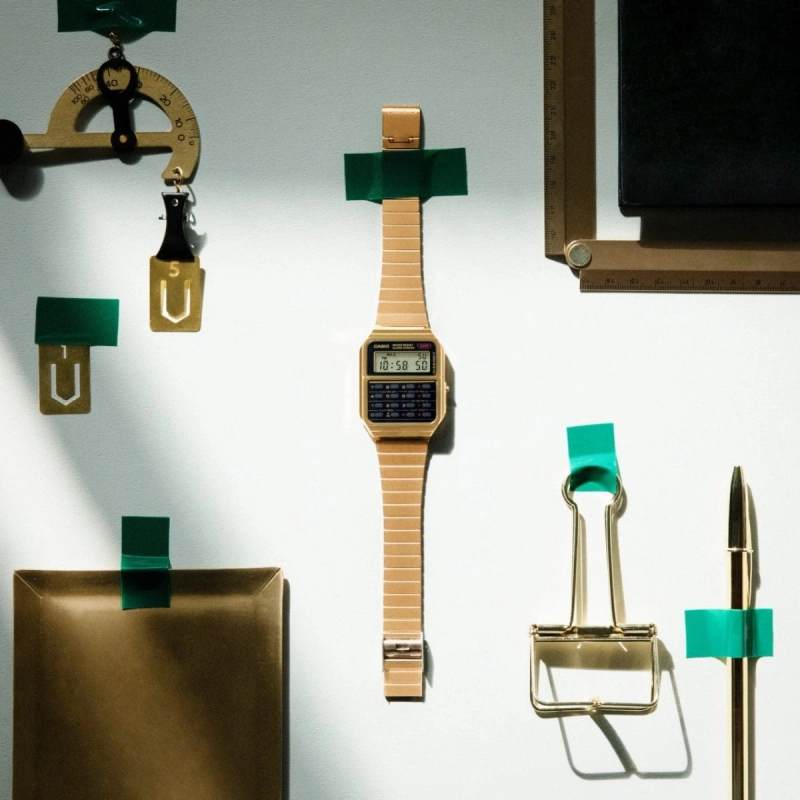 ماشین حساب 8 رقمیفرمت 12/24 ساعتهبدنه و قاب با پوشش رنگ طلاییبند با پوشش یون (ion) طلاییزمانسنجی منظم دیجیتال: ساعت، دقیقه، ثانیه، صبح/عصر، سال، ماه، تاریخ، روز |