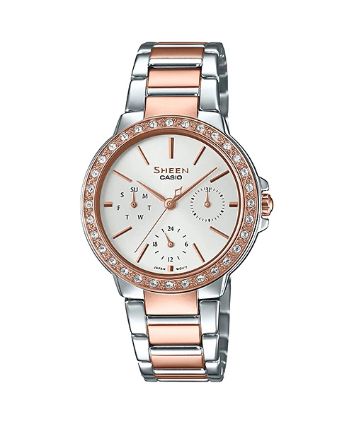 | توضیحات بیشتر | بدنه / قاب: یوناندوددکمه ای، سهقلابهبند استیل ضد زنگ یون اندودو شده رزگلدشیشه معدنیقاب یوناندود رزگلدمقاومت در برابر آب تا عمق 50 متریوقتنمای معمولیآنالوگ: 3 عقربه (ساعتشمار، دقیقهشمار، ثانیهشمار)،3 صفحه مدرج نشانگر تاریخ، روز، 24 ساعتهدقت: ±20 ثانیه در هر ماهعمر تقریبی باتری: 3 سال با باتری SR920SW |